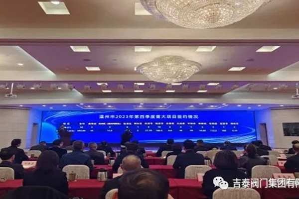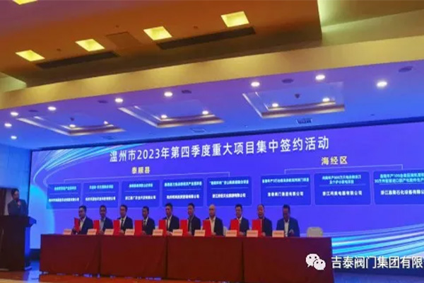 在市委市政府和海经区管委会的指引下,吉泰阀门集团年产3万套高参数系列阀门项目签约落地温州海经区,集团董事长黄彬彬出席签约仪式。项目计划总投资2.8亿元,用地35亩,建筑面积60800㎡,预计年产值4.5亿元,创税1470万元。此次项目成功落地,给集团整体布局增贴新篇章,形成了福建两个铸造基地、温州三个精加工生产基地。主要产品有闸阀、截止阀、止回阀、球阀、蝶阀、加氢阀、电站阀、调节阀等。